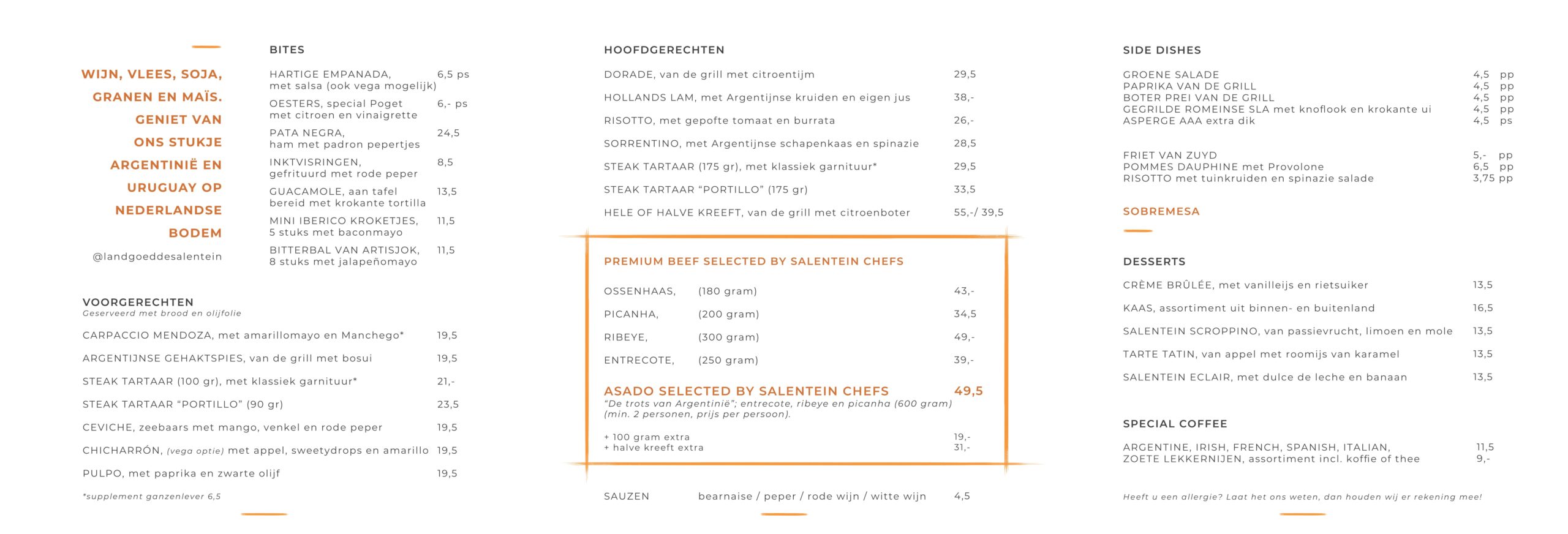 In fine dining Restaurant de Salentein ervaart u een meer verfijnde interpretatie van de Zuid Amerikaanse keuken onder leiding van chefkok Rik Jansma en zijn team.